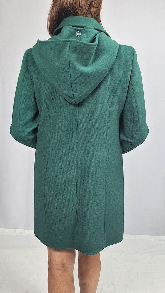 Il cappotto modello Montgomery presenta la caratteristica abbottonatura con alamari, un collo a camicia elegante e tasche pratiche. Il cappuccio removibile aggiunge versatilità, mentre il tessuto in misto lana, morbido al tatto e completamente foderato, garantisce comfort e calore nelle giornate più fredde. Un capo che unisce tradizione e funzionalità.