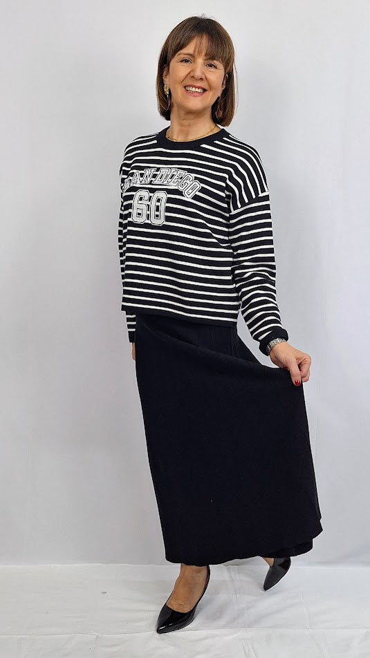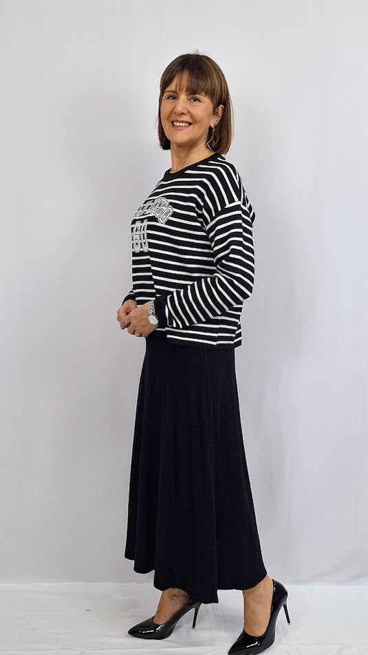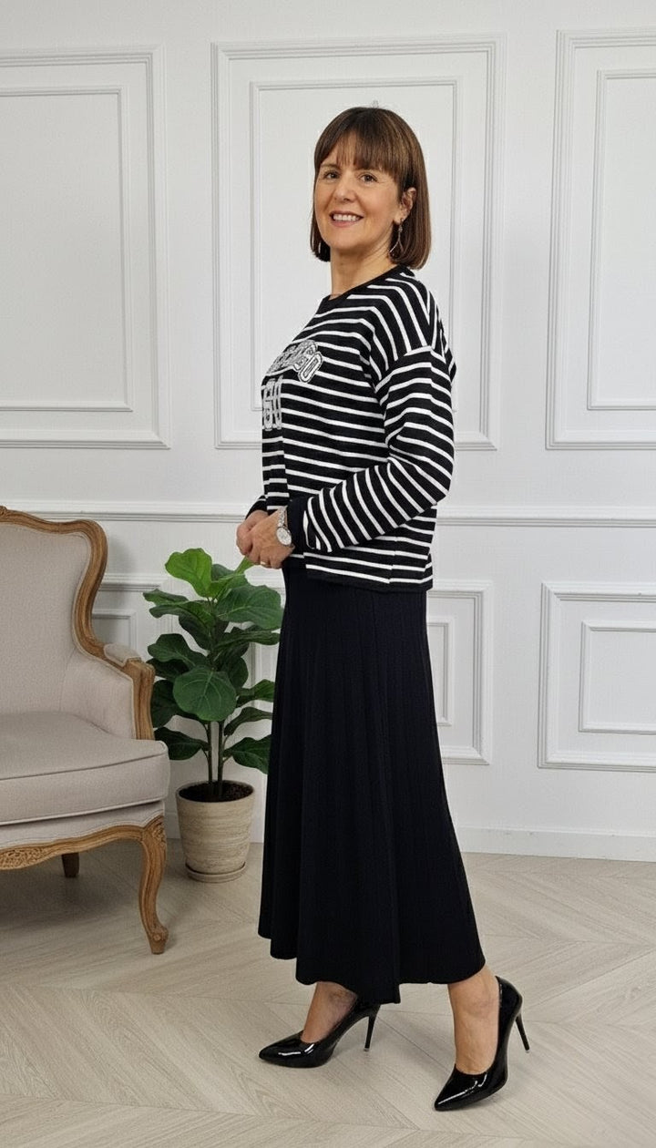 La gonna Malù, realizzata in morbida viscosa, combina comfort e stile con il suo elastico in vita che assicura una calzata perfetta. L'effetto plissettato dona un tocco di eleganza dinamica, mentre la lunghezza alla caviglia valorizza ogni silhouette conferendo raffinatezza a ogni outfit.