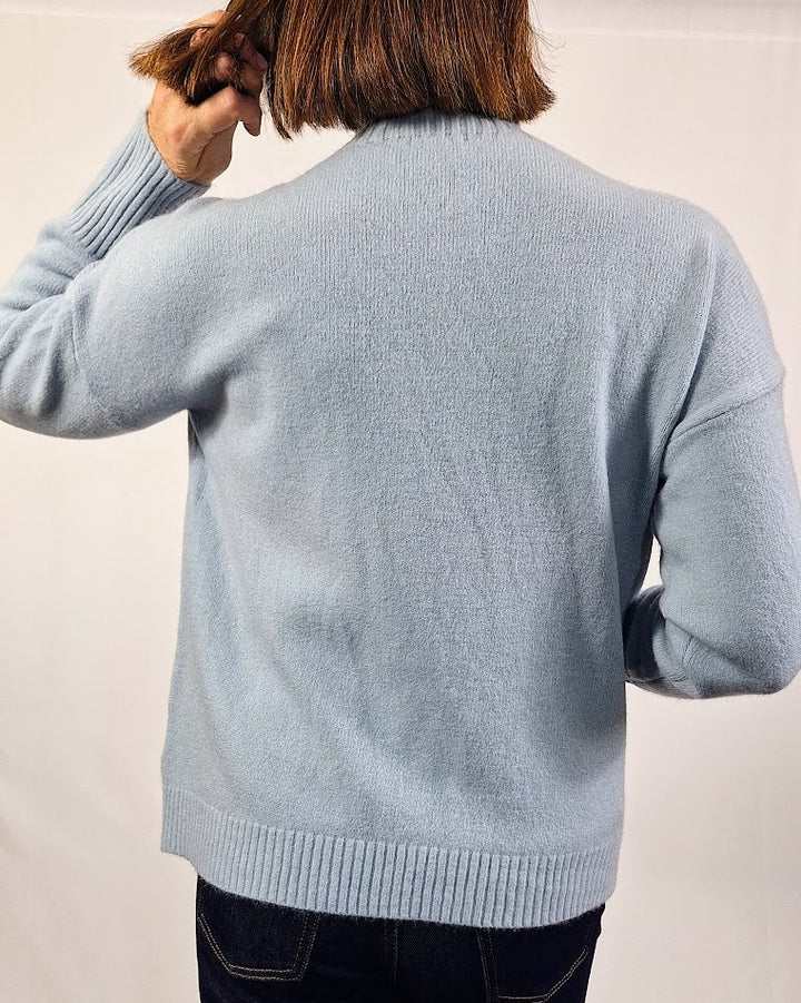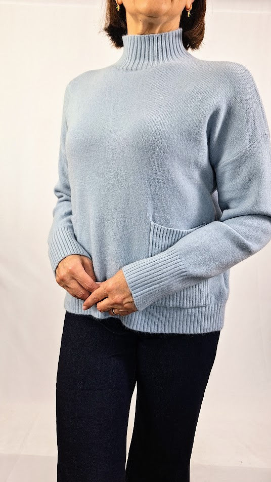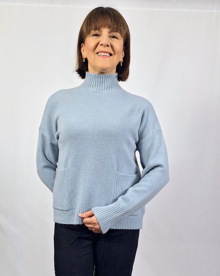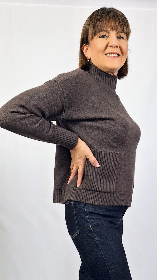 Maglia dal design sofisticato con collo alto a cratere che incornicia elegantemente il viso. Caratterizzata da tasche funzionali sul davanti e silhouette a scatoletta che valorizza la figura. Il tessuto straordinariamente morbido e isolante garantisce il massimo comfort durante le giornate più fredde. I polsini generosi alle maniche assicurano una copertura completa e protezione dal freddo. Un capo versatile che unisce stile contemporaneo e praticità quotidiana.