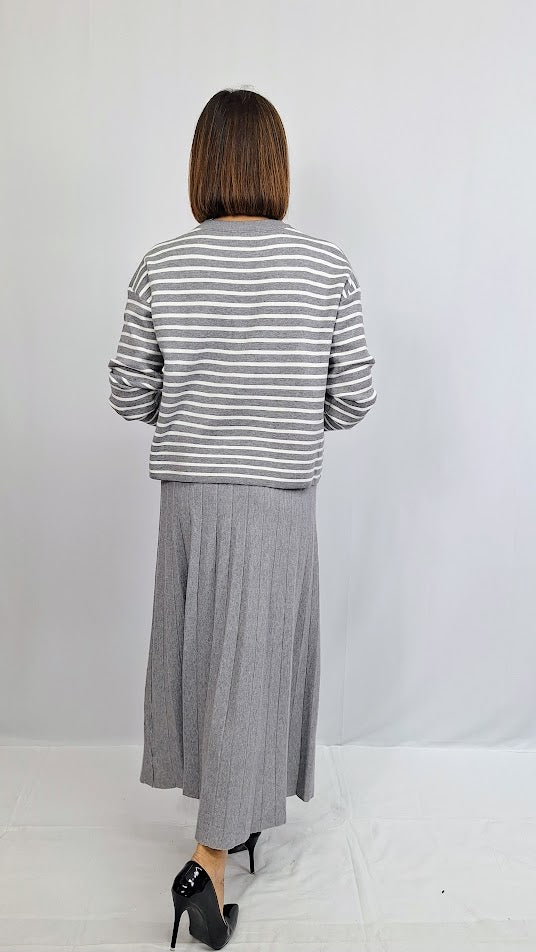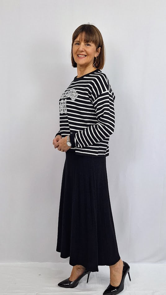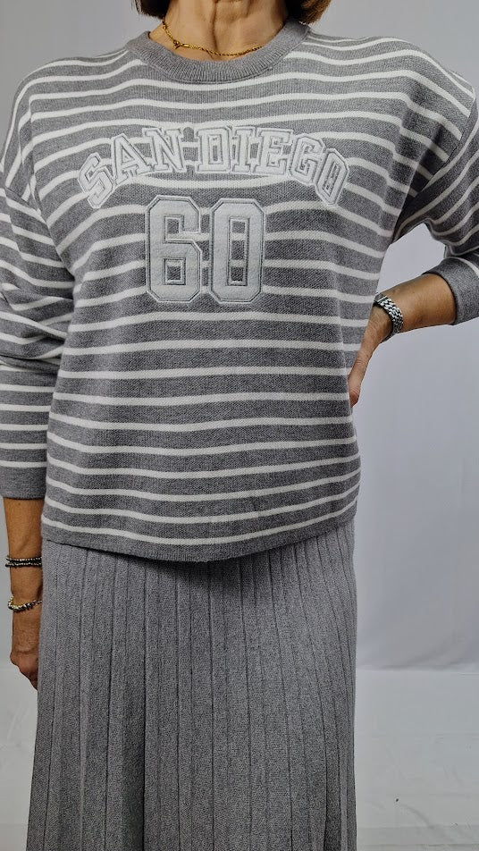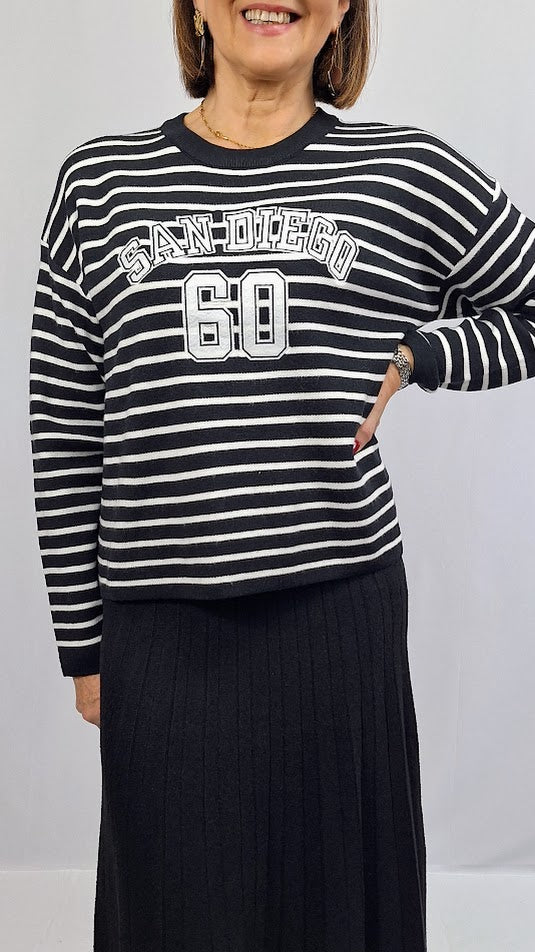 Realizzata in morbida viscosa, la maglia "Malù" presenta un design a girocollo e maniche lunghe, ideale per un comfort elegante. Il modello a scatoletta dona una linea raffinata, mentre la stampa ricamata sul davanti aggiunge un dettaglio sofisticato, valorizzando ogni tuo look con un tocco di classe senza tempo.